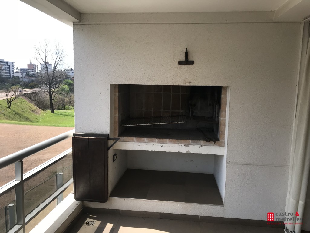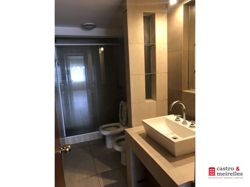 Apartamento de 2 dormitorios con placares, living comedor con estufa a leña, balcón con parrillero, cocina con placares, 3 baños (1 en suite). Cochera con baulera.