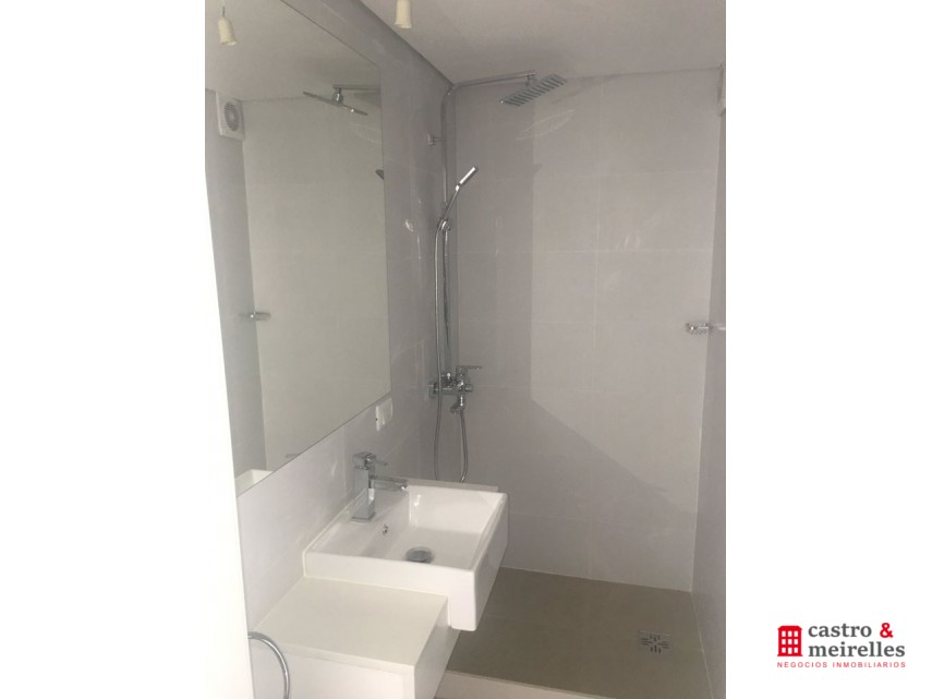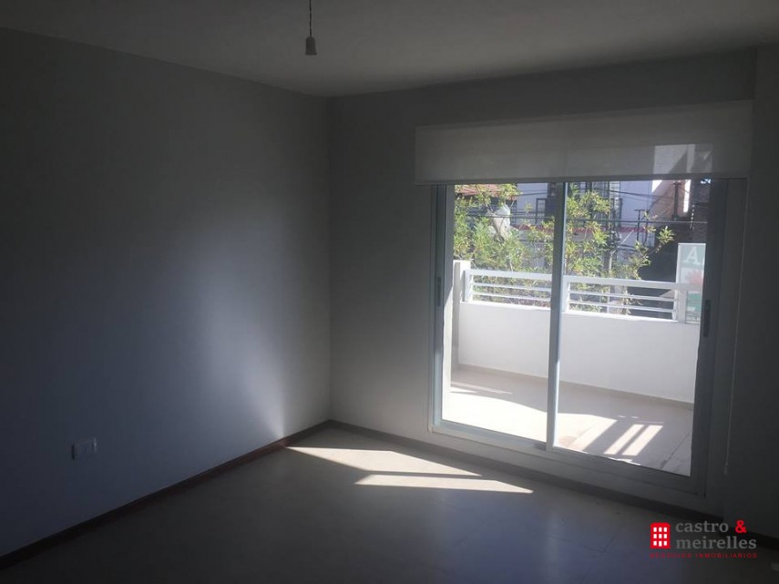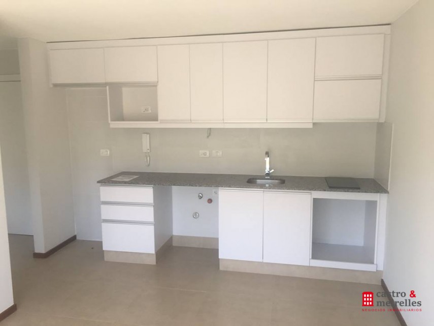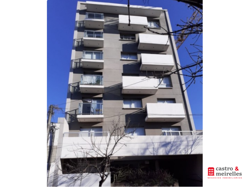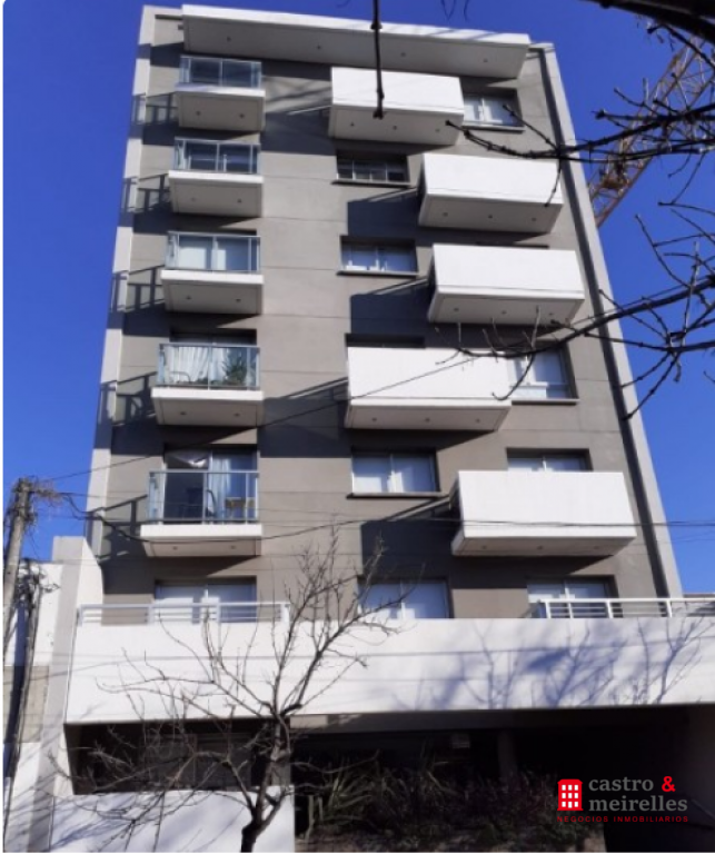 Estar comedor con ventanales a calle Rivera, cortinas rollers, disfrutable balcón, cocina integrada con muebles bajo mesada y colgantes, anafe, aire acondicionado, dormitorio con aire acondicionado, placard, baño.
