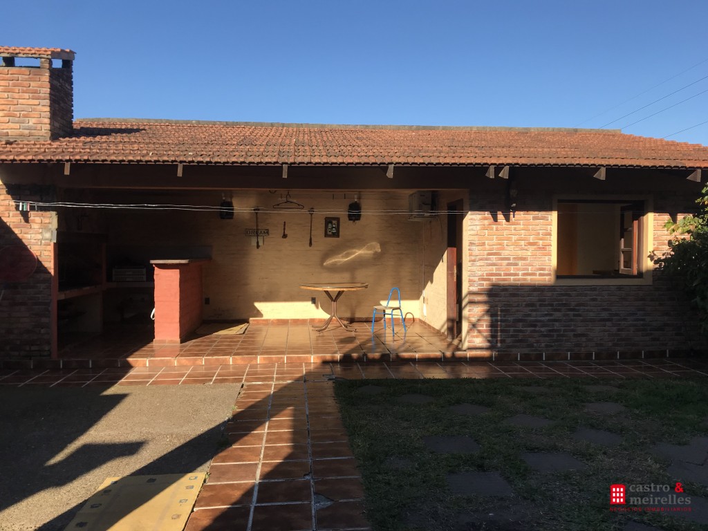 Patio al frente, cochera, jardín con barbacoa y pieza.