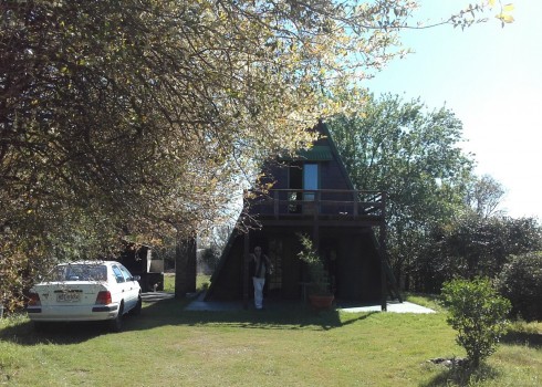 PRECIOSA CABAÑA DE MADERA DOS AGUAS AMOBLADA DE 2 DORMITORIOS, DECK, BAÑO COMPLETO, JARDIN CON PARRILLERO TECHADO.