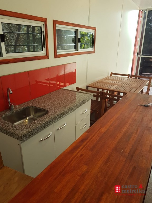 CONTENEDOR: Tiene Garaje, aire acondicionado, termofon, un dormitorio, baño, estar, pieza para depósito y lavarropas, parque 1000 mts cuadrados, parrilla y quincho. Con vista parcial al río. Paralelo al peñón. Actualmente alquilado.